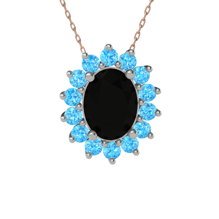 Siyah zirkon ve akuamarin 925 ayar gümüş kolye (40 cm rose altın rolo zincir)