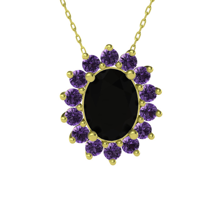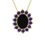Siyah zirkon ve ametist 8 ayar altın kolye (40 cm altın rolo zincir)
