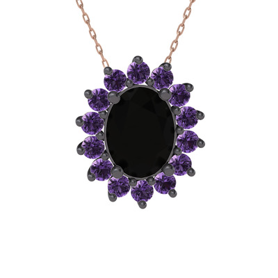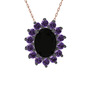 Siyah zirkon ve ametist 925 ayar siyah rodyum kaplama gümüş kolye (40 cm rose altın rolo zincir)