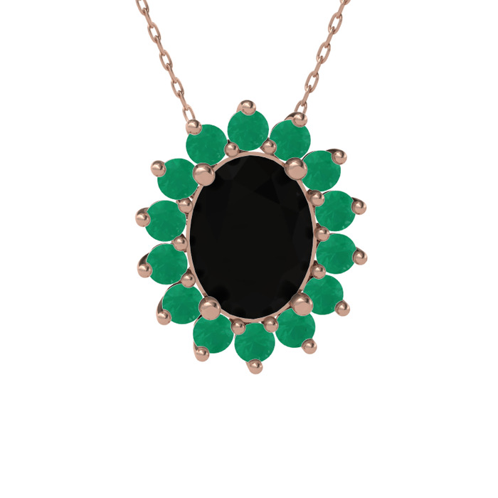 Siyah zirkon ve kök zümrüt 14 ayar rose altın kolye (40 cm rose altın rolo zincir)