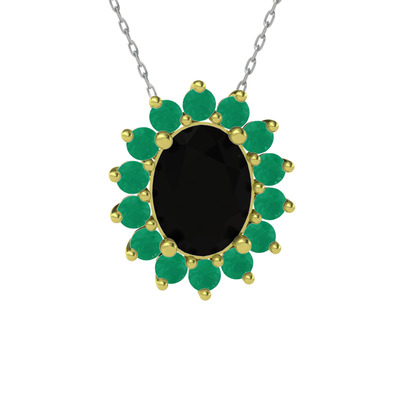 Siyah zirkon ve kök zümrüt 925 ayar altın kaplama gümüş kolye (40 cm beyaz altın rolo zincir)