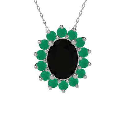 Siyah zirkon ve kök zümrüt 925 ayar gümüş kolye (40 cm beyaz altın rolo zincir)