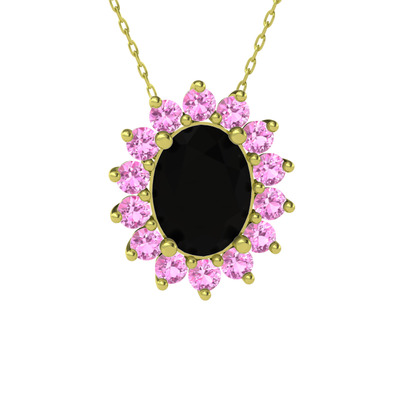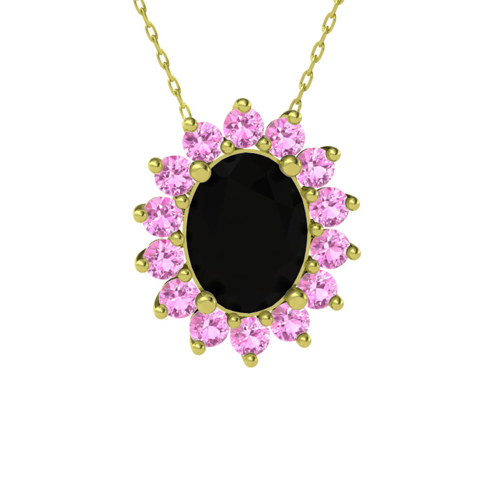 Siyah zirkon ve pembe kuvars 14 ayar altın kolye (40 cm altın rolo zincir)