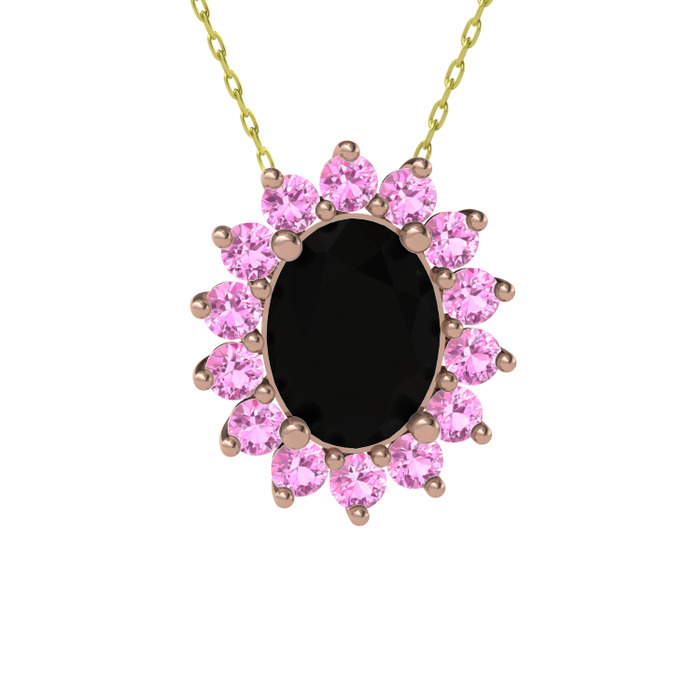Siyah zirkon ve pembe kuvars 925 ayar rose altın kaplama gümüş kolye (40 cm altın rolo zincir)