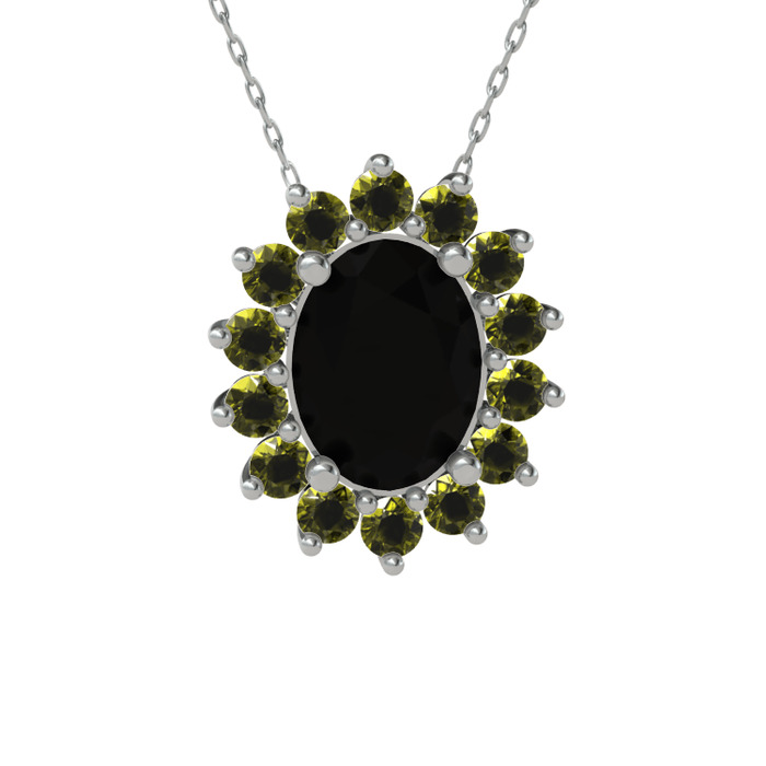 Siyah zirkon ve peridot 14 ayar beyaz altın kolye (40 cm beyaz altın rolo zincir)