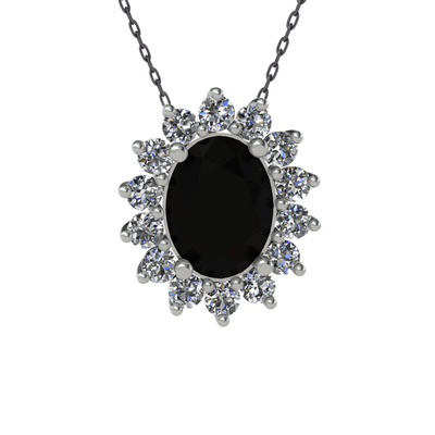 Siyah zirkon ve pırlanta 18 ayar beyaz altın kolye (0.504 karat, 40 cm gümüş rolo zincir)