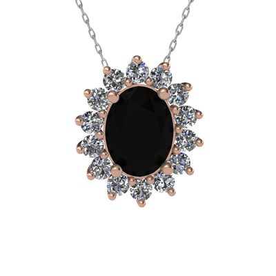 Siyah zirkon ve pırlanta 18 ayar rose altın kolye (0.504 karat, 40 cm gümüş rolo zincir)