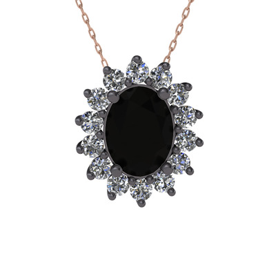 Siyah zirkon ve pırlanta 925 ayar siyah rodyum kaplama gümüş kolye (0.504 karat, 40 cm rose altın rolo zincir)