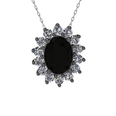 Siyah zirkon ve swarovski 925 ayar siyah rodyum kaplama gümüş kolye (40 cm beyaz altın rolo zincir)