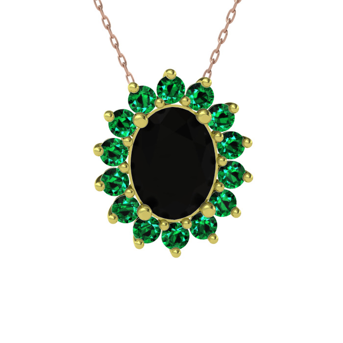Siyah zirkon ve yeşil kuvars 8 ayar altın kolye (40 cm rose altın rolo zincir)