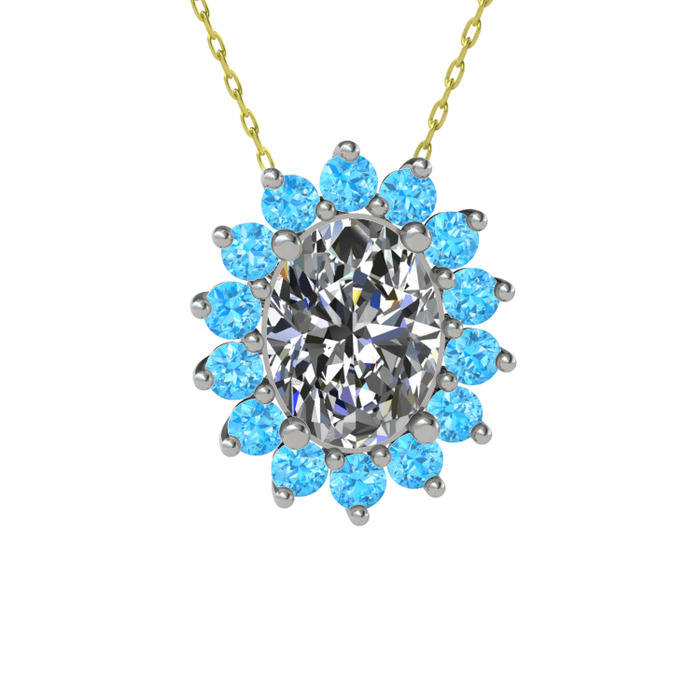 Swarovski ve akuamarin 14 ayar beyaz altın kolye (40 cm altın rolo zincir)