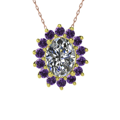 Swarovski ve ametist 14 ayar altın kolye (40 cm rose altın rolo zincir)