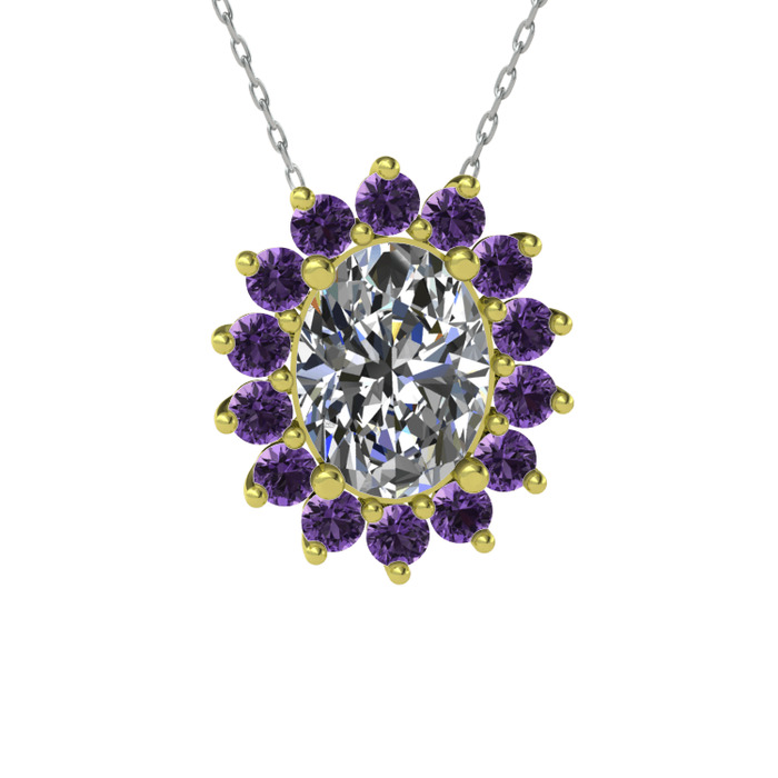 Swarovski ve ametist 18 ayar altın kolye (40 cm beyaz altın rolo zincir)
