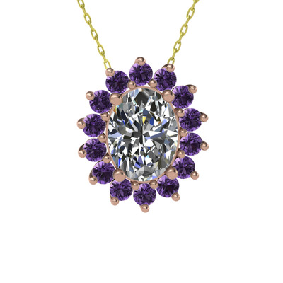 Swarovski ve ametist 18 ayar rose altın kolye (40 cm altın rolo zincir)
