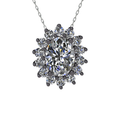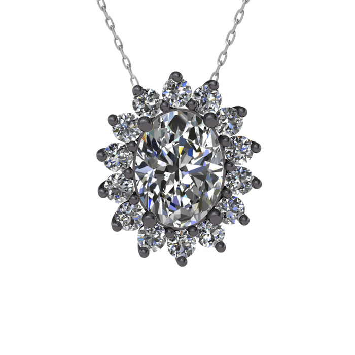 Swarovski ve beyaz zirkon 925 ayar siyah rodyum kaplama gümüş kolye (40 cm beyaz altın rolo zincir)