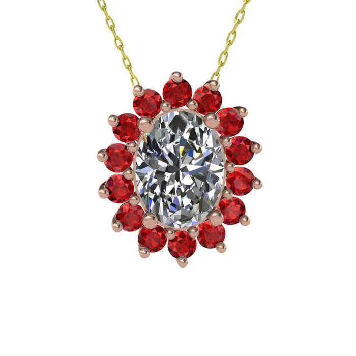 Swarovski ve garnet 8 ayar rose altın kolye (40 cm altın rolo zincir)