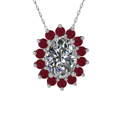 Swarovski ve kök yakut 14 ayar beyaz altın kolye (40 cm beyaz altın rolo zincir)