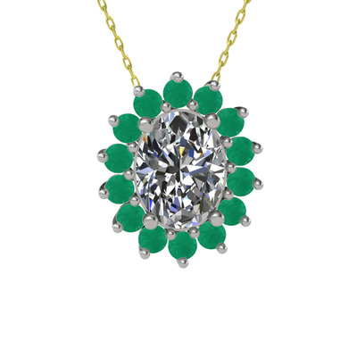 Swarovski ve kök zümrüt 925 ayar gümüş kolye (40 cm gümüş rolo zincir)
