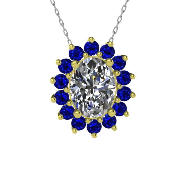 Swarovski ve lab safir 18 ayar altın kolye (40 cm beyaz altın rolo zincir)