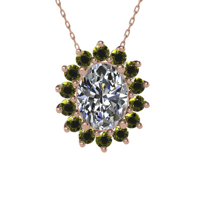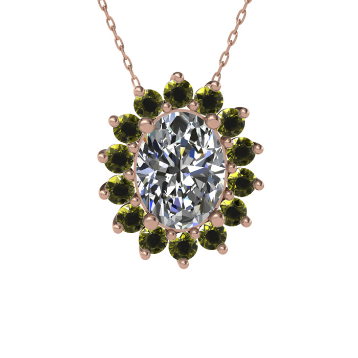 Swarovski ve peridot 18 ayar rose altın kolye (40 cm rose altın rolo zincir)