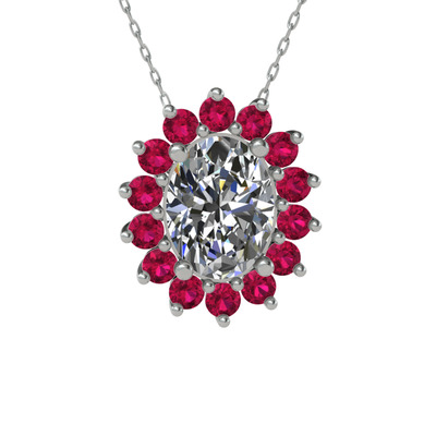 Swarovski ve rodolit garnet 14 ayar beyaz altın kolye (40 cm beyaz altın rolo zincir)