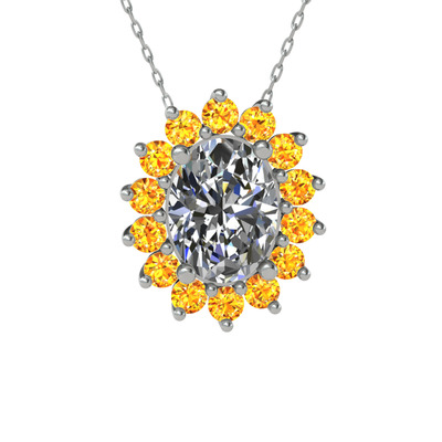 Swarovski ve sitrin 925 ayar gümüş kolye (40 cm beyaz altın rolo zincir)