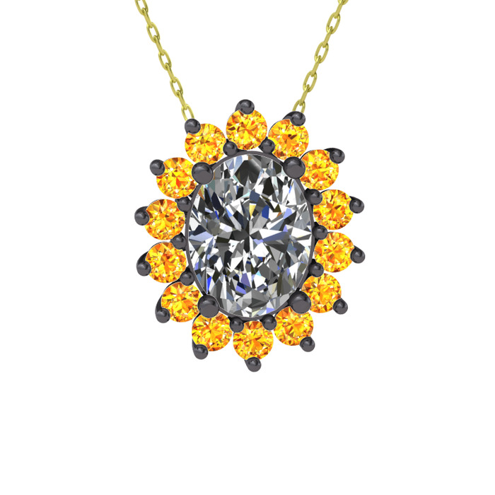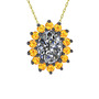 Swarovski ve sitrin 925 ayar siyah rodyum kaplama gümüş kolye (40 cm altın rolo zincir)
