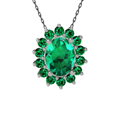 Yeşil kuvars 8 ayar beyaz altın kolye (40 cm gümüş rolo zincir)