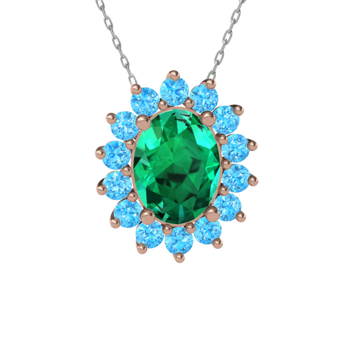 Yeşil kuvars ve akuamarin 18 ayar rose altın kolye (40 cm beyaz altın rolo zincir)
