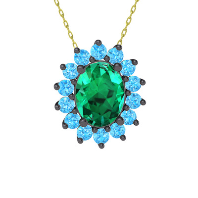 Yeşil kuvars ve akuamarin 925 ayar siyah rodyum kaplama gümüş kolye (40 cm altın rolo zincir)