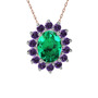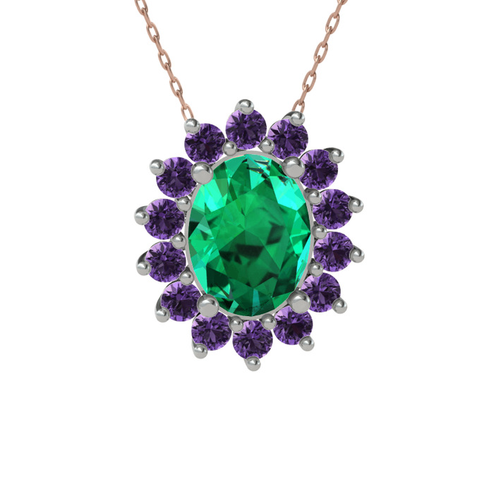 Yeşil kuvars ve ametist 8 ayar beyaz altın kolye (40 cm rose altın rolo zincir)