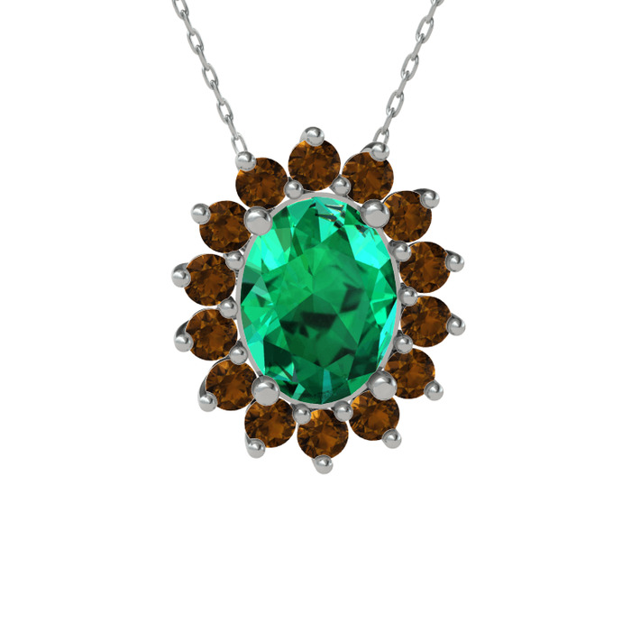 Yeşil kuvars ve dumanlı kuvars 8 ayar beyaz altın kolye (40 cm beyaz altın rolo zincir)