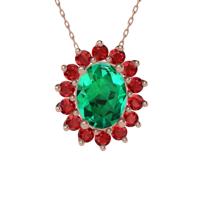Yeşil kuvars ve garnet 8 ayar rose altın kolye (40 cm rose altın rolo zincir)