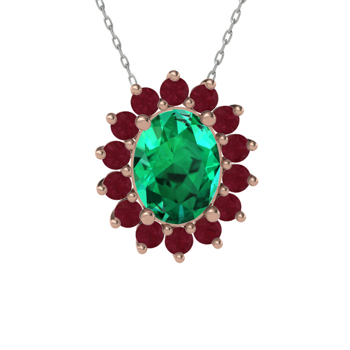 Yeşil kuvars ve kök yakut 14 ayar rose altın kolye (40 cm beyaz altın rolo zincir)