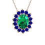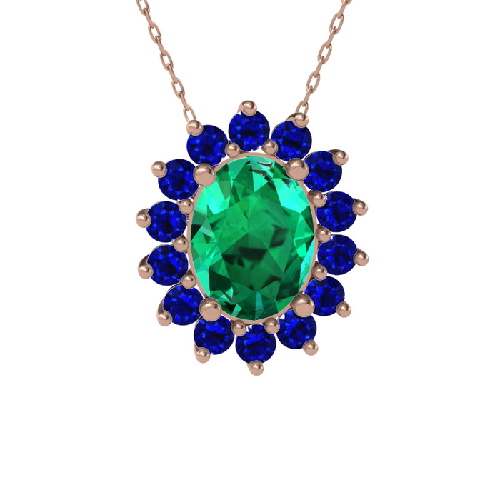Yeşil kuvars ve lab safir 18 ayar rose altın kolye (40 cm gümüş rolo zincir)