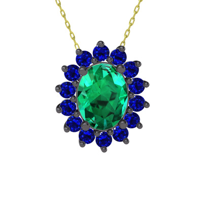 Yeşil kuvars ve lab safir 925 ayar siyah rodyum kaplama gümüş kolye (40 cm gümüş rolo zincir)