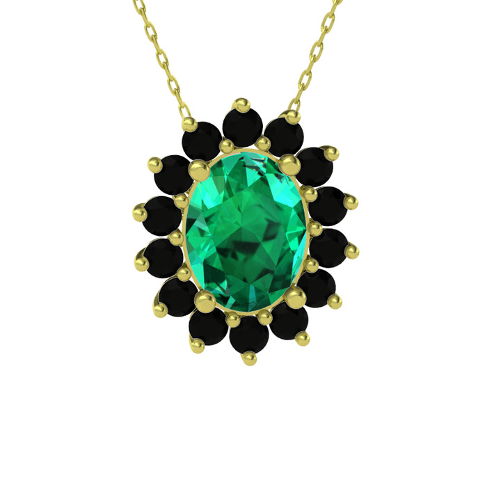 Yeşil kuvars ve siyah zirkon 18 ayar altın kolye (40 cm altın rolo zincir)