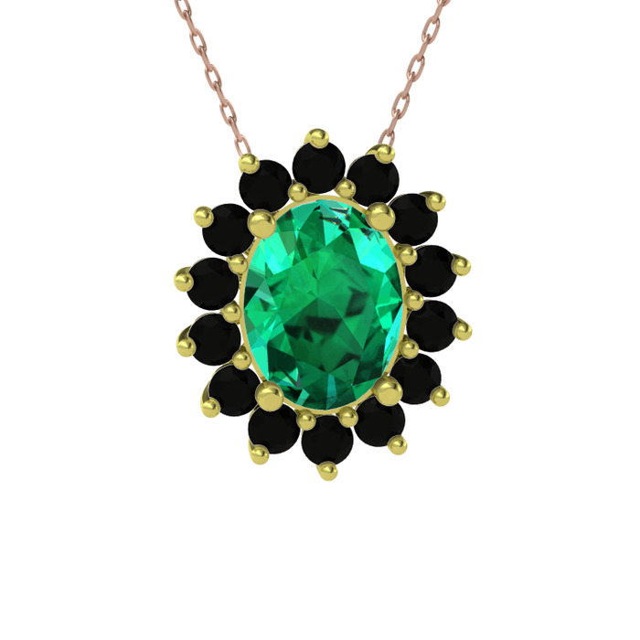 Yeşil kuvars ve siyah zirkon 925 ayar altın kaplama gümüş kolye (40 cm rose altın rolo zincir)