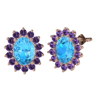 Akuamarin ve ametist 925 ayar rose altın kaplama gümüş küpe