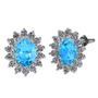 Akuamarin ve beyaz zirkon 14 ayar beyaz altın küpe