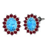 Akuamarin ve kök yakut 14 ayar beyaz altın küpe