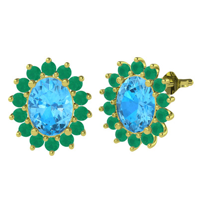 Akuamarin ve kök zümrüt 8 ayar altın küpe