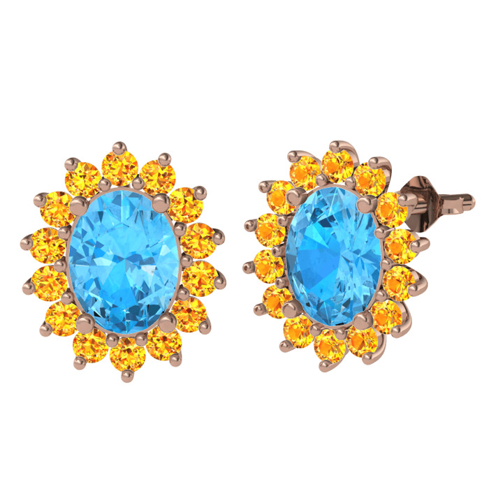 Akuamarin ve sitrin 14 ayar rose altın küpe