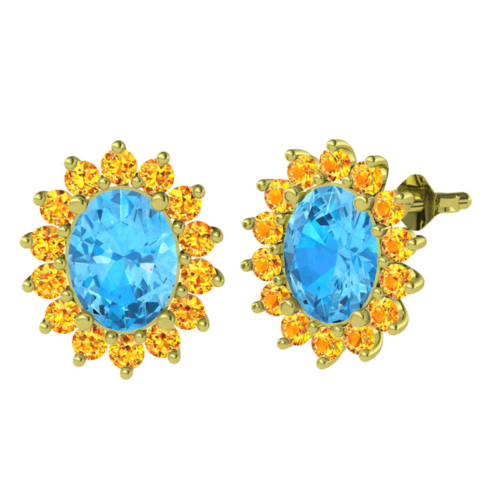 Akuamarin ve sitrin 8 ayar altın küpe