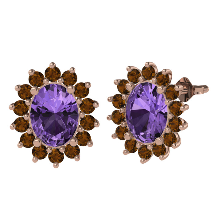 Ametist ve dumanlı kuvars 8 ayar rose altın küpe