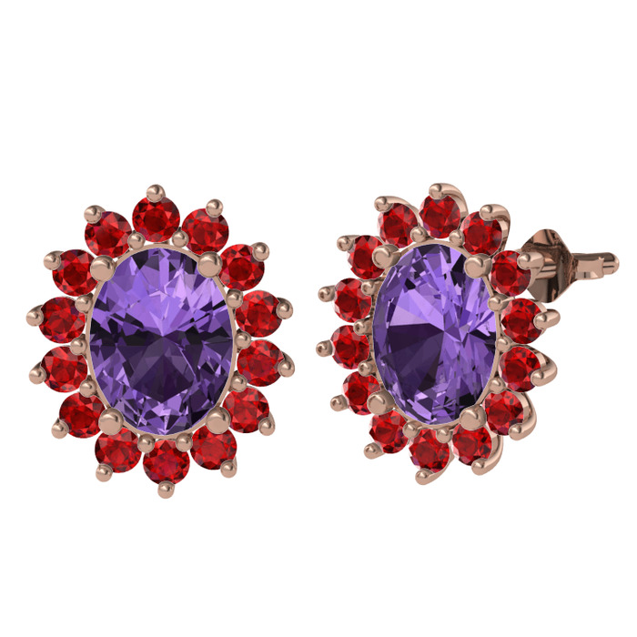 Ametist ve garnet 925 ayar rose altın kaplama gümüş küpe