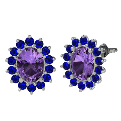 Ametist ve lab safir 8 ayar beyaz altın küpe