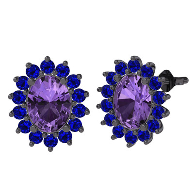 Ametist ve lab safir 925 ayar siyah rodyum kaplama gümüş küpe