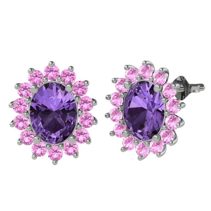 Ametist ve pembe kuvars 18 ayar beyaz altın küpe