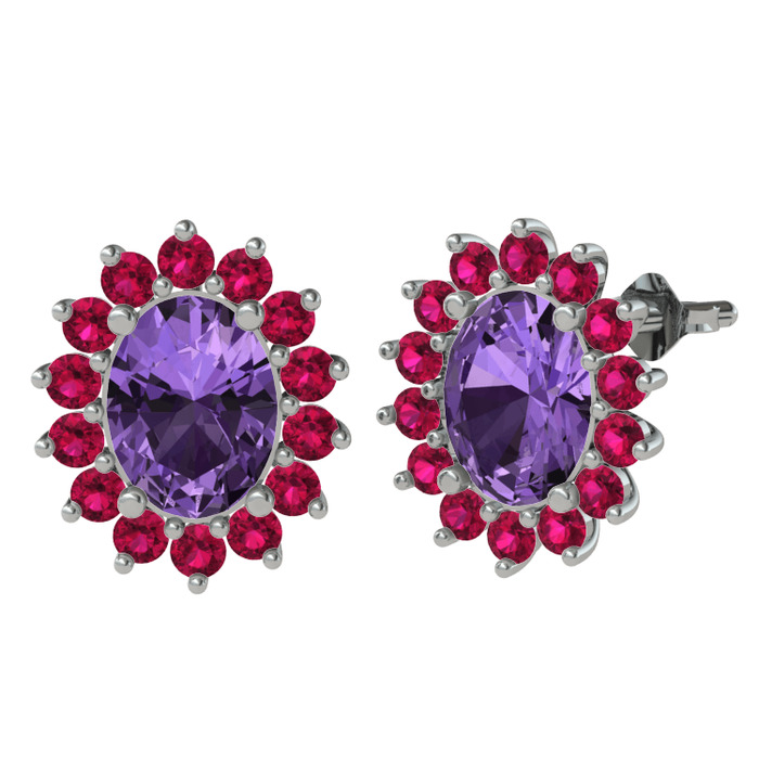 Ametist ve rodolit garnet 14 ayar beyaz altın küpe
